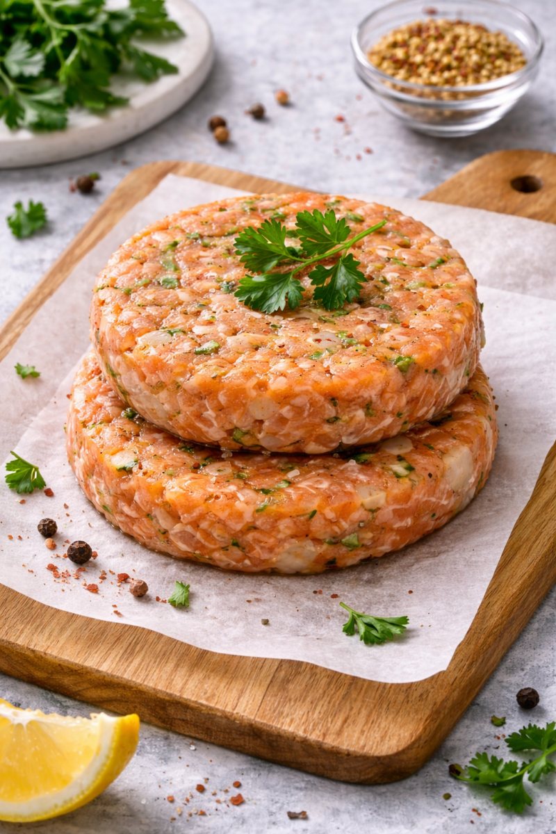 Hamburguesas de Salmon fresco nada de conservantes 100% natural.